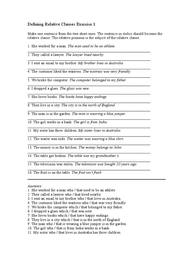 I'm seonaid and i hope you like the website. Online exercises english grammar and courses free tutorial relative clauses. It includes the use of who/which/that as. Amelia, mother is from shanghai, speaks english and chinese fluently. Relative clause exercise 1 / 2 (advanced) relative clause exercise 3 / 4 (intermediate) pdf exercises: